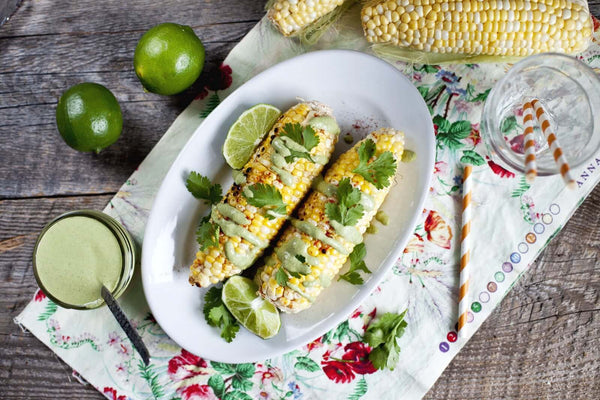 Grilled Corn on the Cob with Creamy Walnut-Basil Sauce - Appetizer Recipe
