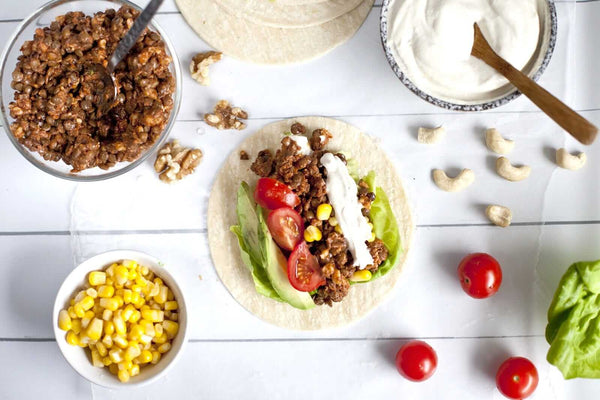 Lentil and Walnut Tacos with Vegan Sour Cream - Main Course Recipe