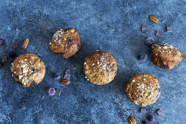 Gluten-Free Banana Muffins with Blueberries, Pecans and Chocolate Chunks - Breakfast Recipe
