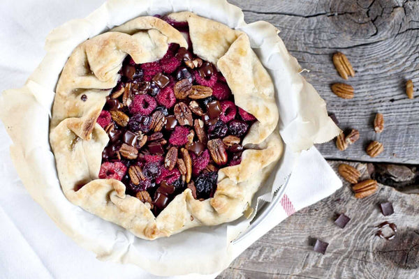 Rustic Vegan Field Berry Pecan Tart with Chocolate - Dessert Recipe